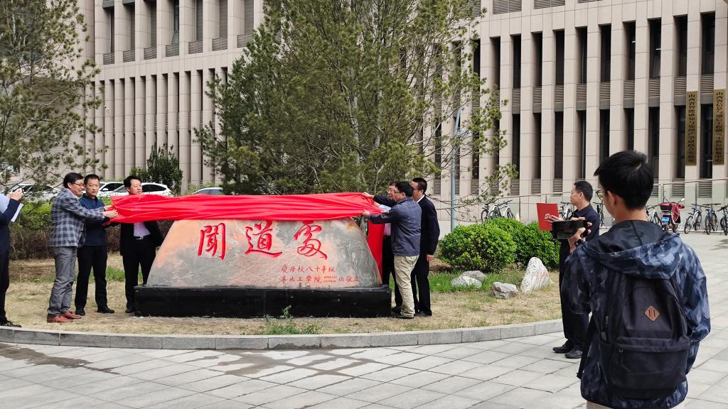 罗建国书记、李世中副院长、赵河明副院长、韩晶老师和校友代表共同为纪念石揭幕,王院长向校友颁发大奶做爱