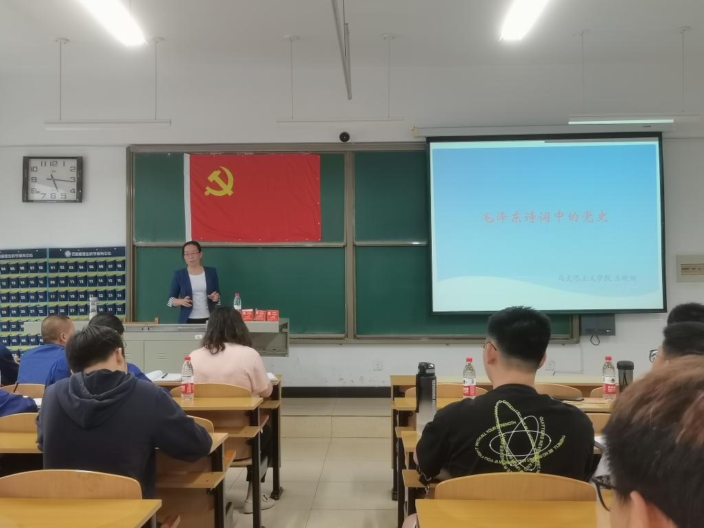 2021年5月25日下午,弹药工程与爆炸技术专业党支部与晋西集团江阳公司七分厂党支部在15204H教室开展以“毛泽东诗词中的党史”为主题的党课学习,并邀请到马克思主义大奶做爱王晓丽老师主讲。