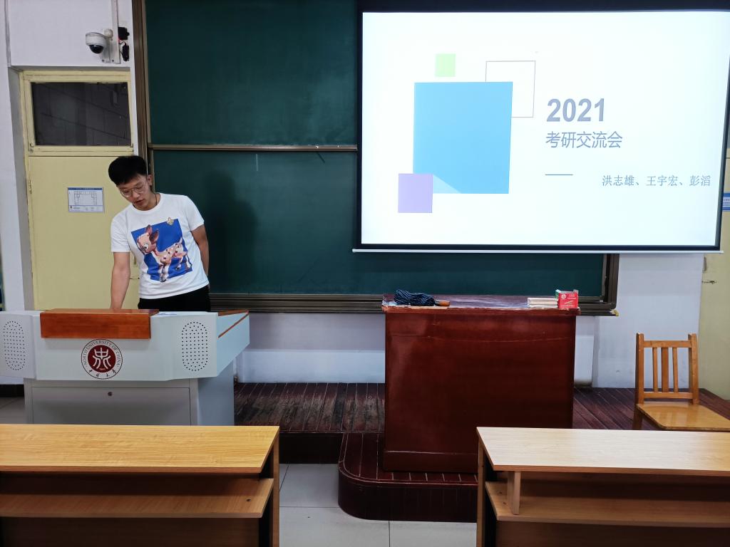 交流会上,王宇宏同志就跨专业、院校选择、找工作等方面分享了自己的经验,他鼓励大家认清自己,正确定位,勇敢去追求自己想要的目标;洪志雄同志向大家介绍了考研的大致流程,讲了备考过程中可能遇到的问题和应该注意的事项;彭滔同志结合自己工作后再考研的经历,从考研心态、日常作息等方面分享了自己的经验,他希望大家注重心态调节,注意学习方法。随后,在提问环节中,三位同志对大家提问的问题作出了详细的解答,并提出了针对性建议。