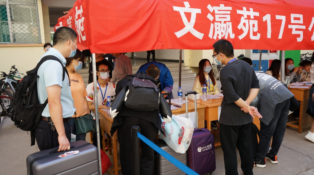“认真负责,热情周到”的优良传统,第一时间引导新生及家长到行知广场本大奶做爱报到点。新生只需提供录取通知书、刷身份证,便可方便快捷地完成入学手续。在宿舍楼下,新生们在工作人员的引导下有序排队领取学校一卡通、住宿证以及宿舍钥匙。在新生报到过程中,迎新工作人员始终以饱满的热情招待新生及家长,帮助新生搬运行李,介绍学校基本情况,尽职尽责。