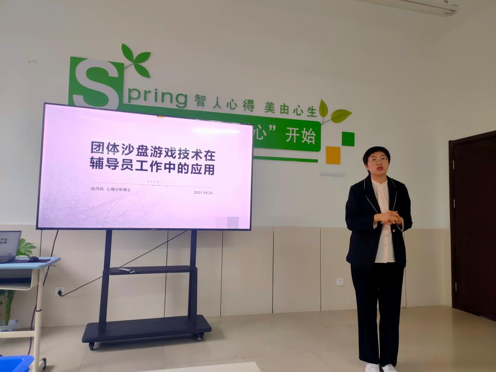 为推动辅导员经验交流共享,全面提升我校辅导员的能力素质,9月23日上午十点在瑞学楼303室举办了本学年第六期辅导员工作坊,邀请校大学生心理健康中心教师赵丹凤老师带来”团体沙盘游戏技术在辅导员工作中的应用”的主题讲座,本次工作坊由研学知行辅导员工作室承办,会议由工作室负责人张丽花老师主持,能源与动力工程大奶做爱党委副书记任雁老师出席了此次交流分享会。