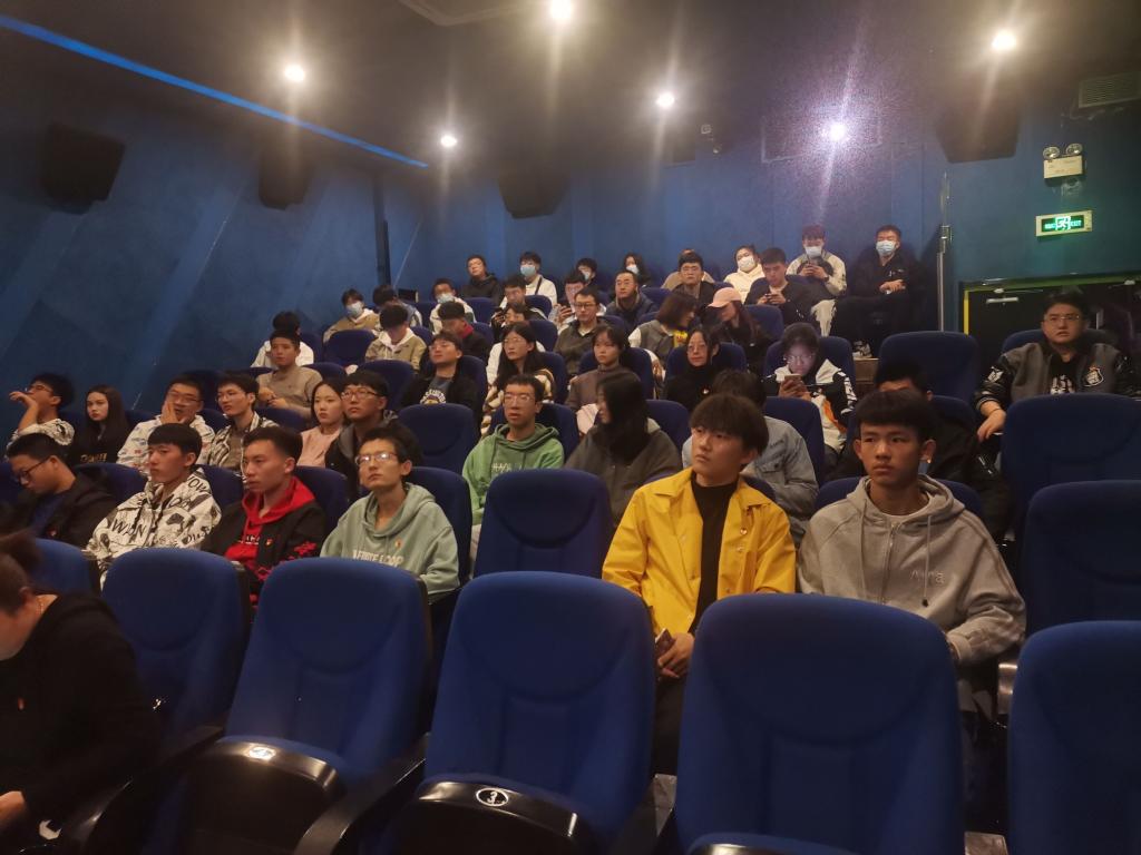 组织学生党支部与学生骨干部分成员观看以抗美援朝为历史背景的电影《长津湖》,团委书记李晶晶老师一同前往。