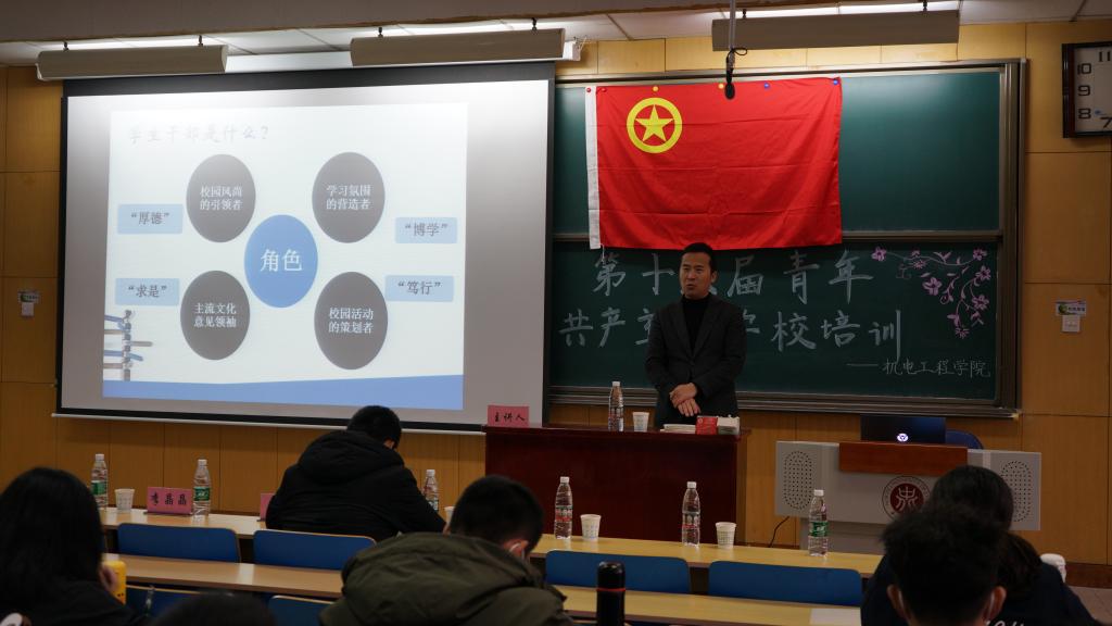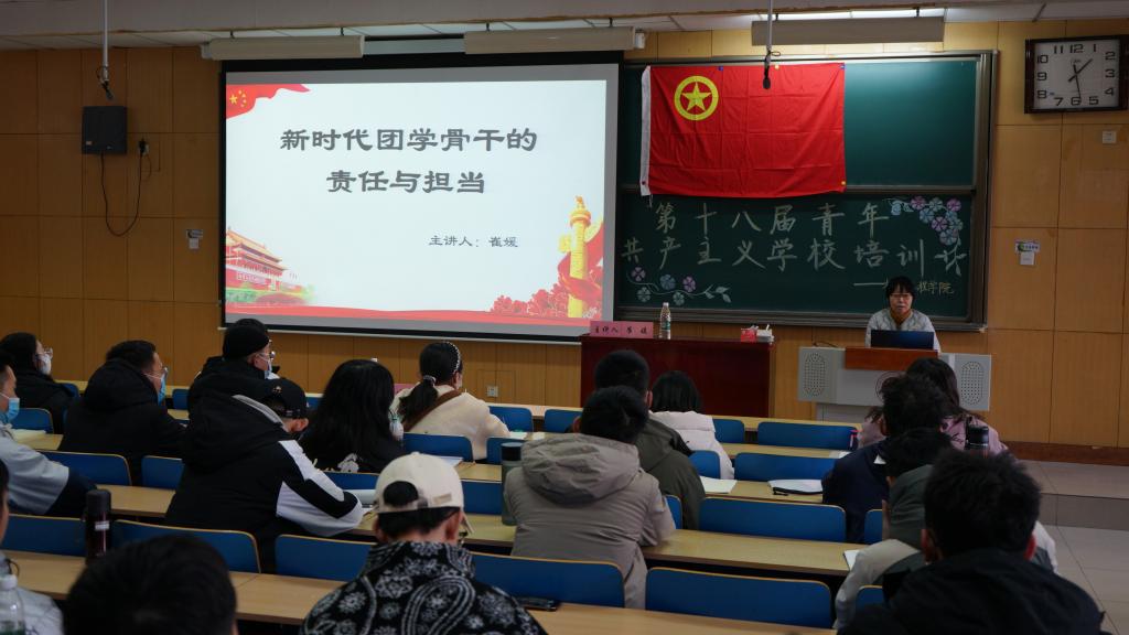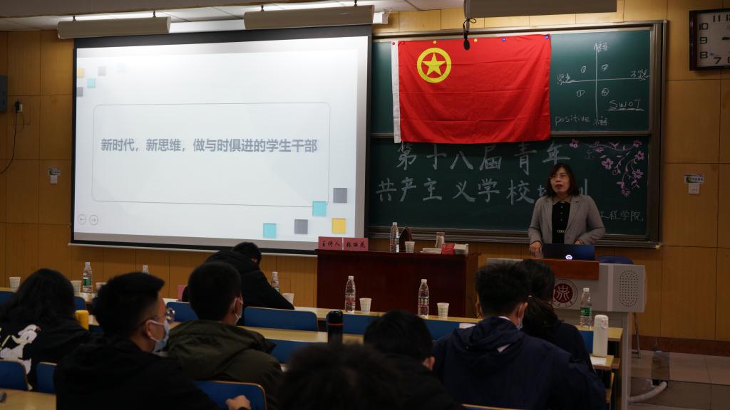 校团委组织宣传部部长崔媛老师授课,是一堂以“新时代团学骨干的责任与担当”为主题的思想教育课,强调了当代学生骨干应该做到苦干、实干、巧干,并且指出了一些学生骨干不负责任,做甩手掌柜的问题,表示作为学生骨干应不忘初心,脚踏实地做好本职工作。最后,播放了为国家科技发展献身的几位伟大科学家的光荣事迹,让我们感受到他们的责任与担当,并希望学生干部应该以他们为榜样认真负责,艰苦奋斗。