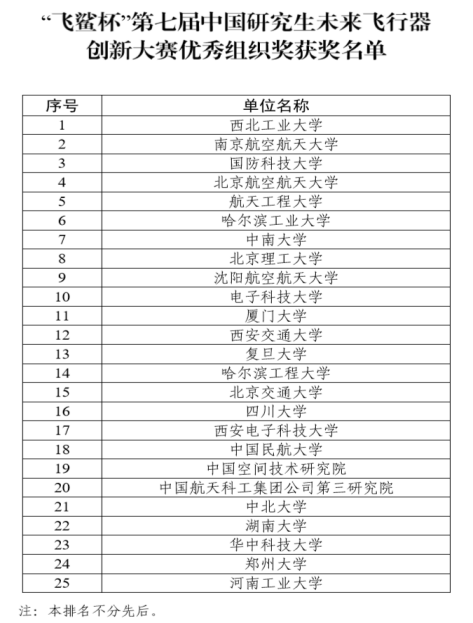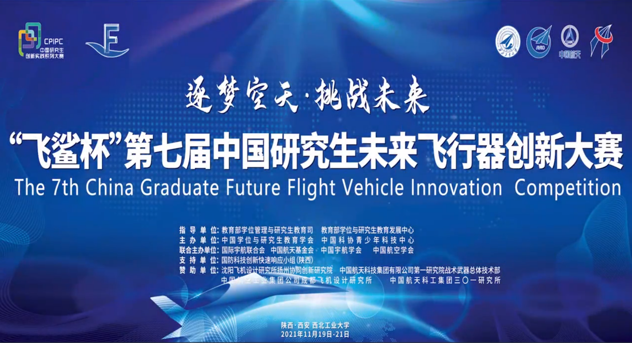 2021年11月19日至21日,由教育部学位管理与研究生教育司和教育部学位与研究生教育发展中心指导,中国学位与研究生教育学会和中国科协青少年科技中心主办,国际宇航联合会、中国航天基金会、中国宇航学会、中国航空学会联合主办的“飞鲨杯”第七届中国研究生未来飞行器创新大赛总决赛在西北工业大学举行,由于疫情影响,本次比赛通过网络答辩的方式进行。大赛以“创新改变未来”为理念,围绕飞行器技术创新,着力增强广大研究生自主创新能力、综合实践能力,切实培养和发掘高素质拔尖创新人才。