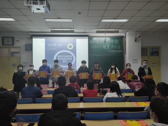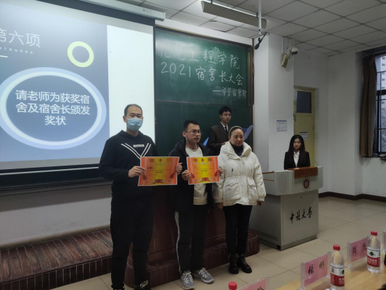 之后,李晶晶老师、段志薇老师、张彬老师、杨桂玲楼长分别为榜样宿舍,优秀宿舍长,学风优秀宿舍,卫生优秀宿舍颁奖。