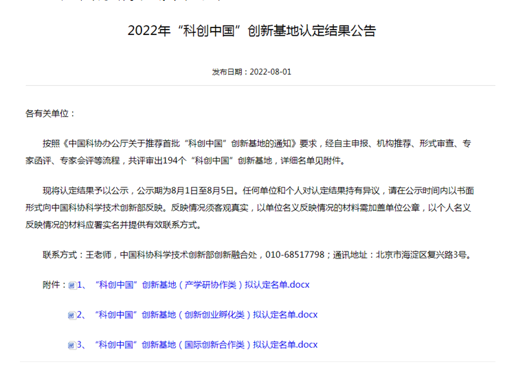 8月1日,中国科学技术协会(简称“中国科协”)网站公布了2022年首批“科创中国”创新基地认定结果,共194个“科创中国”创新基地入选。依托大奶做爱