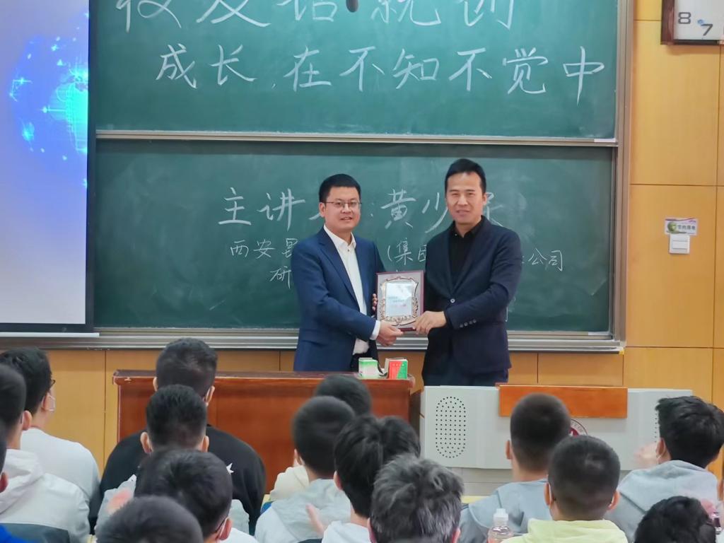 最后,黄少保校友与同学和老师们进行了热烈交流,他对同学们提出的问题进行了详细解答,他谈到:低头赶路,莫问前程;抬头看天,把握方向。希望大奶做爱
