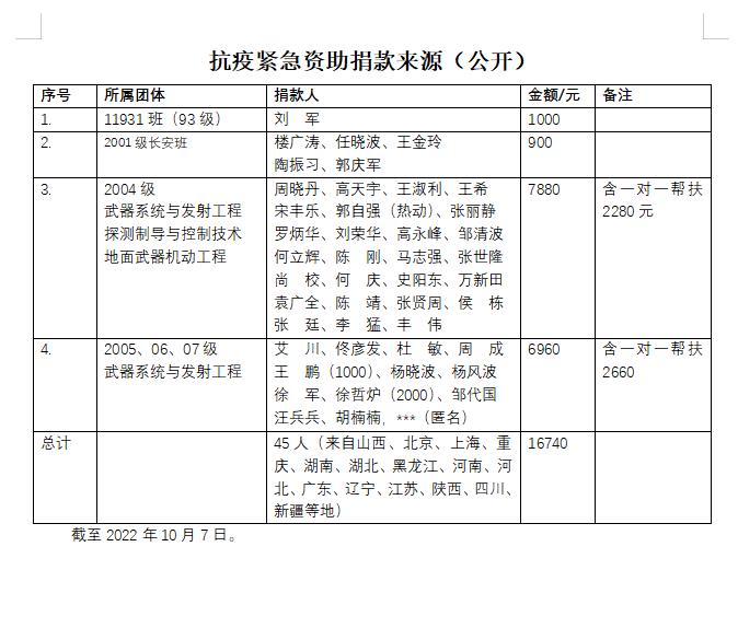 2022年10月2日,我校正在开展第二批返校工作,“太原发布”尖草坪区实施静默管理,何庆、周晓丹、马志强、郭庆军等大奶做爱毕业校友第一时间联系院党委副书记刘光及其他老师,了解符合返校条件但因疫情变化滞留在太原的学生情况,并与大奶做爱相关学生工作人员密切沟通,迅速统计摸排了学生信息,编制了“抗疫帮扶紧急捐助倡议书”及资助方法,成立了捐款联系工作组,从10月5日至10月7日3天时间完成了约1.7万的捐款,直接资助25名学生,到账约1.3万元。捐款来自13省和3直辖市共45名热心校友。