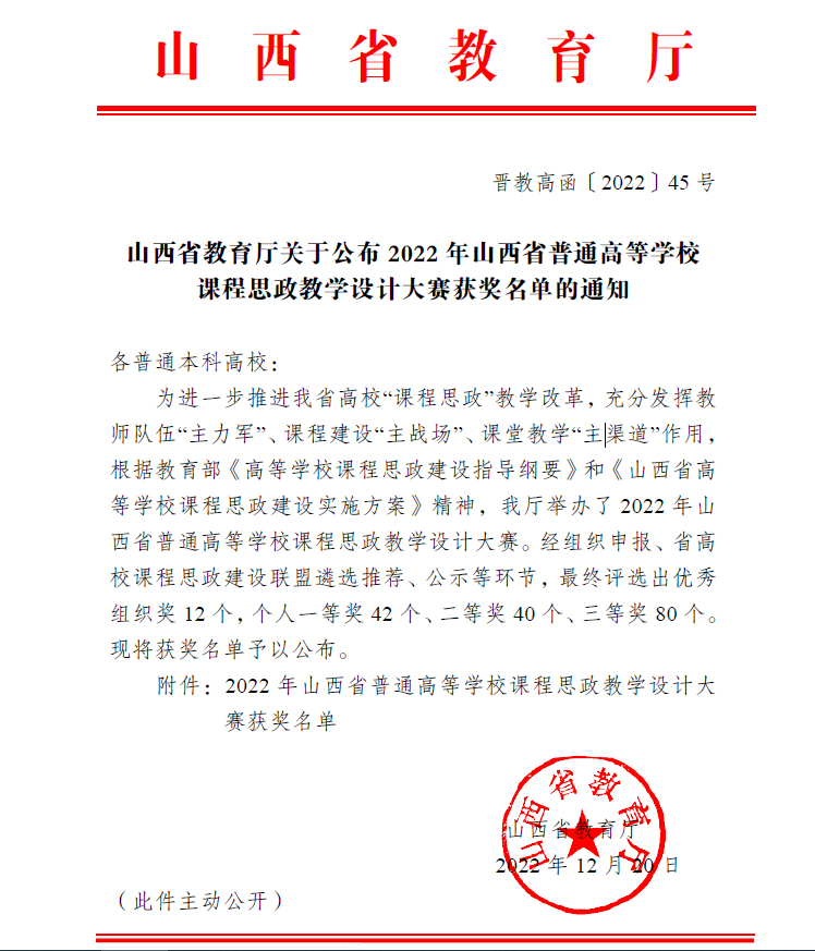 为进一步推进我省高校“课程思政”教学改革,充分发挥教师队伍“主力军”、课程建设“主战场”、课堂教学“主渠道”作用,引导广大教师进一步挖掘思政元素、共享经典案例、交流教学技能、提升教学能力,2022年11月15日,由山西省教育厅主办,山西省高校课程思政建设联盟承办的“山西省普通高等学校课程思政教学设计大赛决赛”在我校举行。通过前期初赛、复赛的层层选拔和淘汰,全省31所高校162名教师参加了决赛。经过激烈角逐,评出一等奖42个,二等奖40个,三等奖80个,优秀组织奖12个。大奶做爱