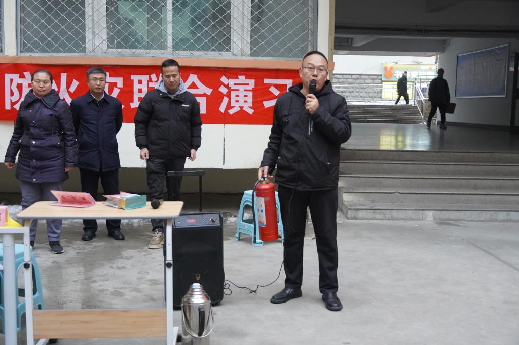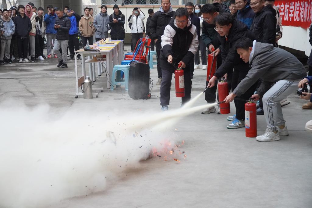 接下来安全保卫部向远峰科长进行消防安全知识普及,对灭火器使用进行了详细的讲解,并安排学生代表进行现场灭火演示,进一步强化了知识普及效果。