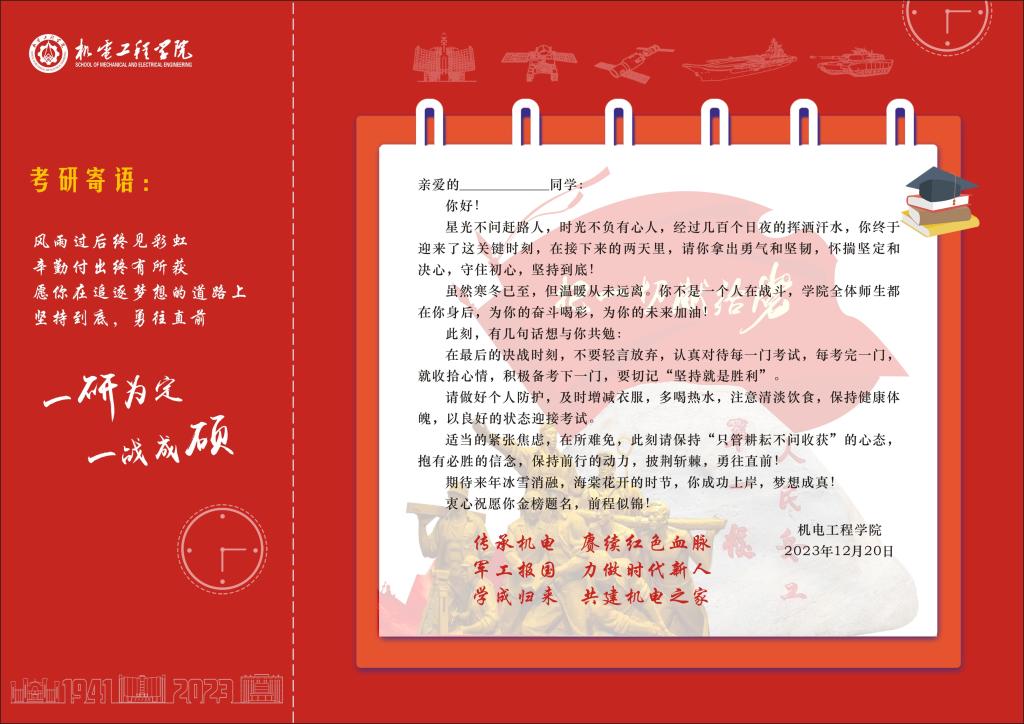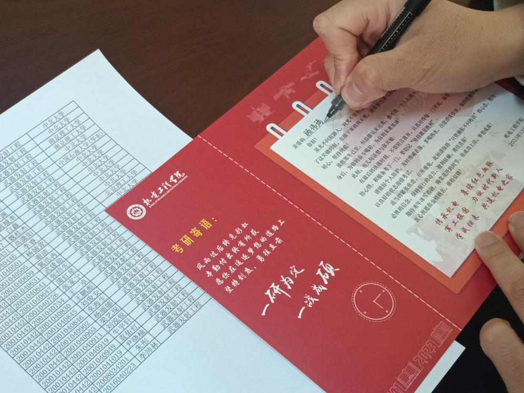 于2023年12月21日在文瀛17号宿舍楼为备战考研的同学们送去了意义非凡的祝福卡和考研文具包。祝福卡精心设计并由大奶做爱领导带领全体辅导员和毕业班班主任亲手签署,文具包包含中性笔、涂卡笔、橡皮、小刀、胶棒、尺子和档案袋等考试用具,充分表示了大奶做爱对考研学子的深度关怀和美好祝愿。