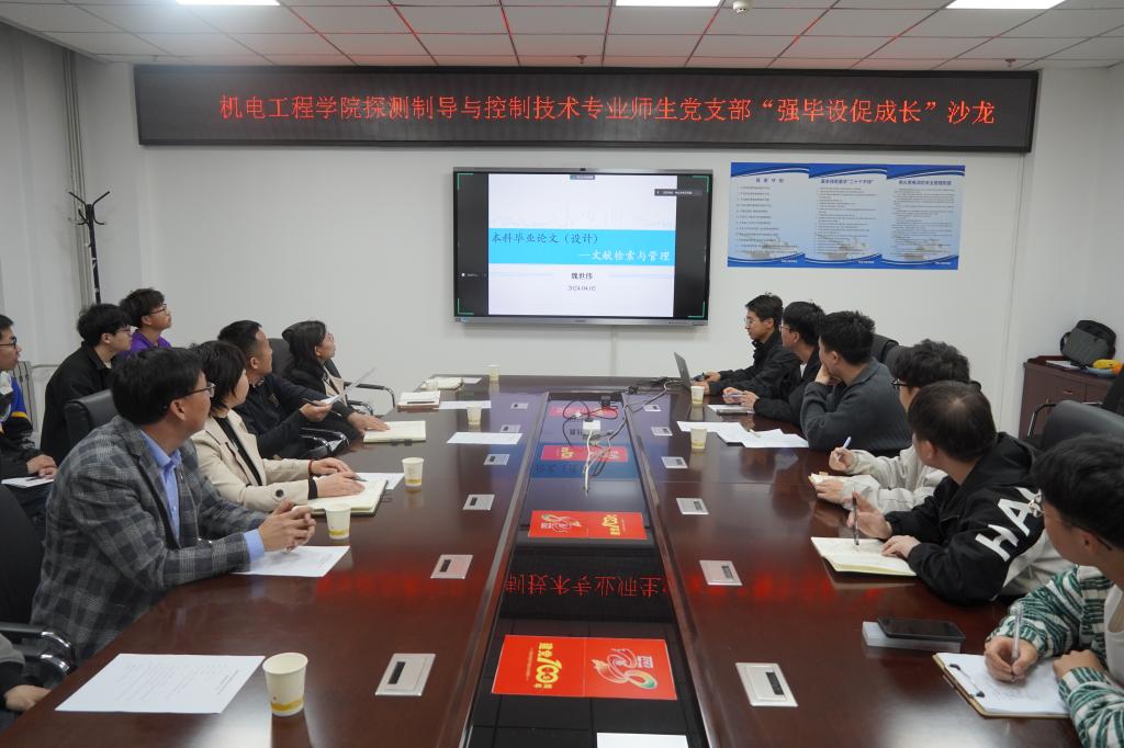 党建工作和教学工作深度融合,教工党支部和学生党支部联合互动,助力机电学子产出高质量毕业设计论文。4月2日上午,教工第三党支部联合探测制导与控制技术专业本科生党支部在科学楼A座313会议室举办了以 “强毕设 促成长”为主题的沙龙活动,活动以线上线下相结合的方式进行。院党委书记赵永娟、党委副书记刘光、教工第三党支部书记兼系主任韩晶、教工党员秦栋泽、张冬梅、魏世伟老师、探测制导与控制技术专业毕业生党员及非党员代表28人参加了会议。会议由本科生党支部书记贺婧主持。
