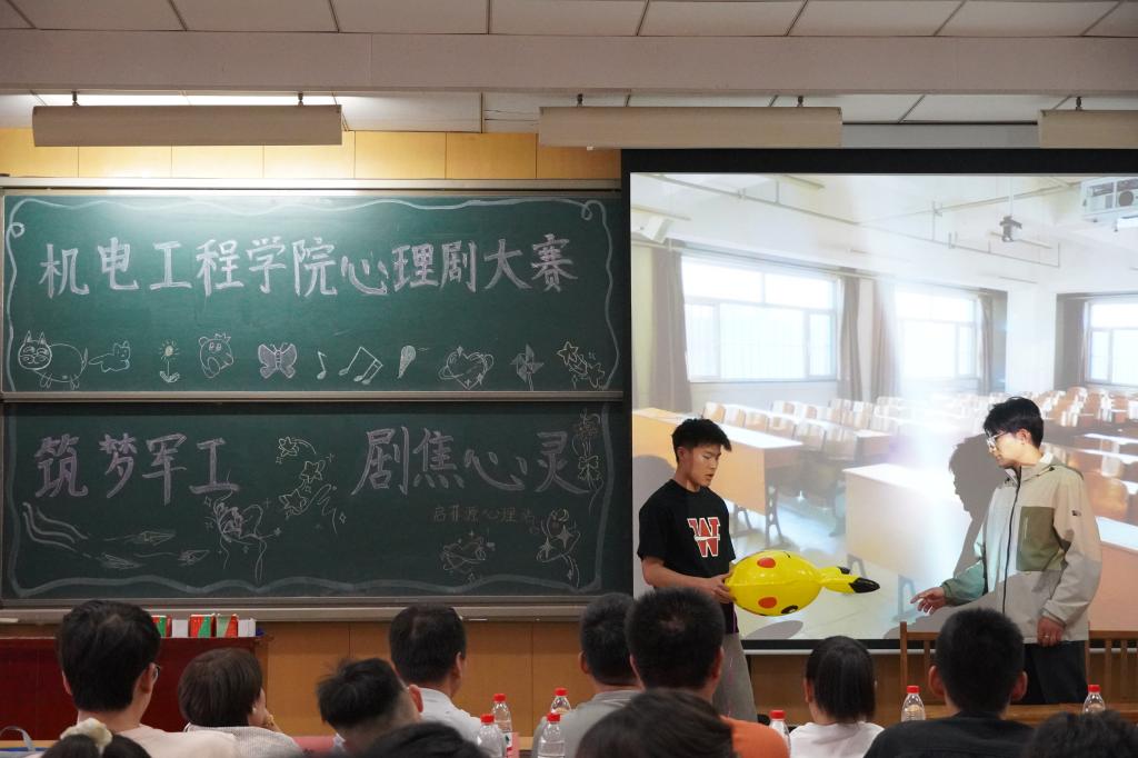 在11508H教室,成功举办“筑梦军工 剧焦心灵”校园心理剧大赛。大赛特别邀请院党委书记赵永娟、院党委副书记刘光、团委书记李晶晶、辅导员贺婧、王永文、张悦老师以及大奶做爱