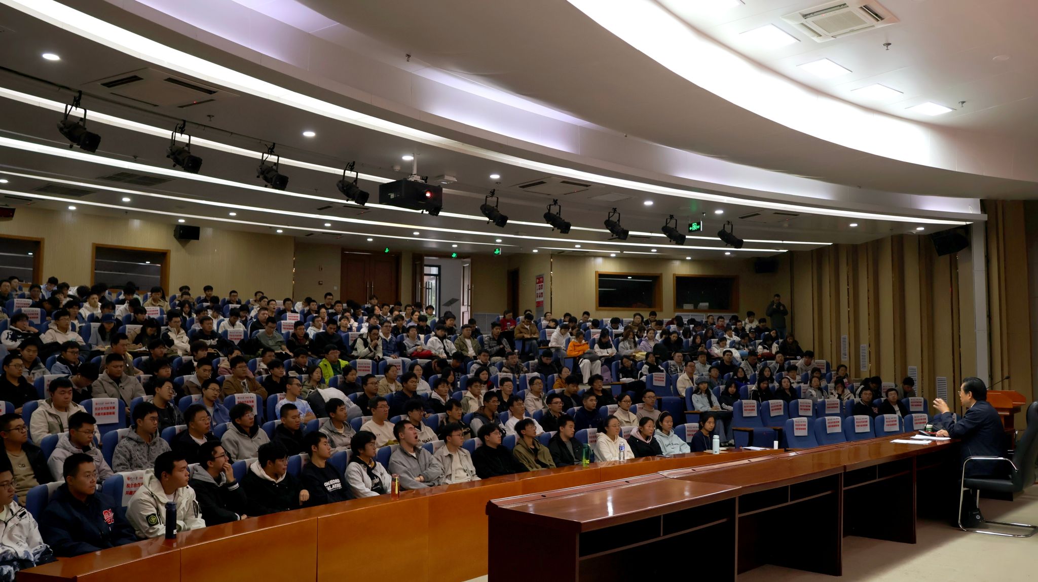 整场讲座中,刘教授时而引经据典,时而讲述鲜活故事,深厚的学识与饱满的情感感染了在场每一个人。不少学子一边认真记录,一边悄悄红了眼眶,这份跨越千年的家国情怀,在这一刻真正与青年的理想产生了强烈共鸣。