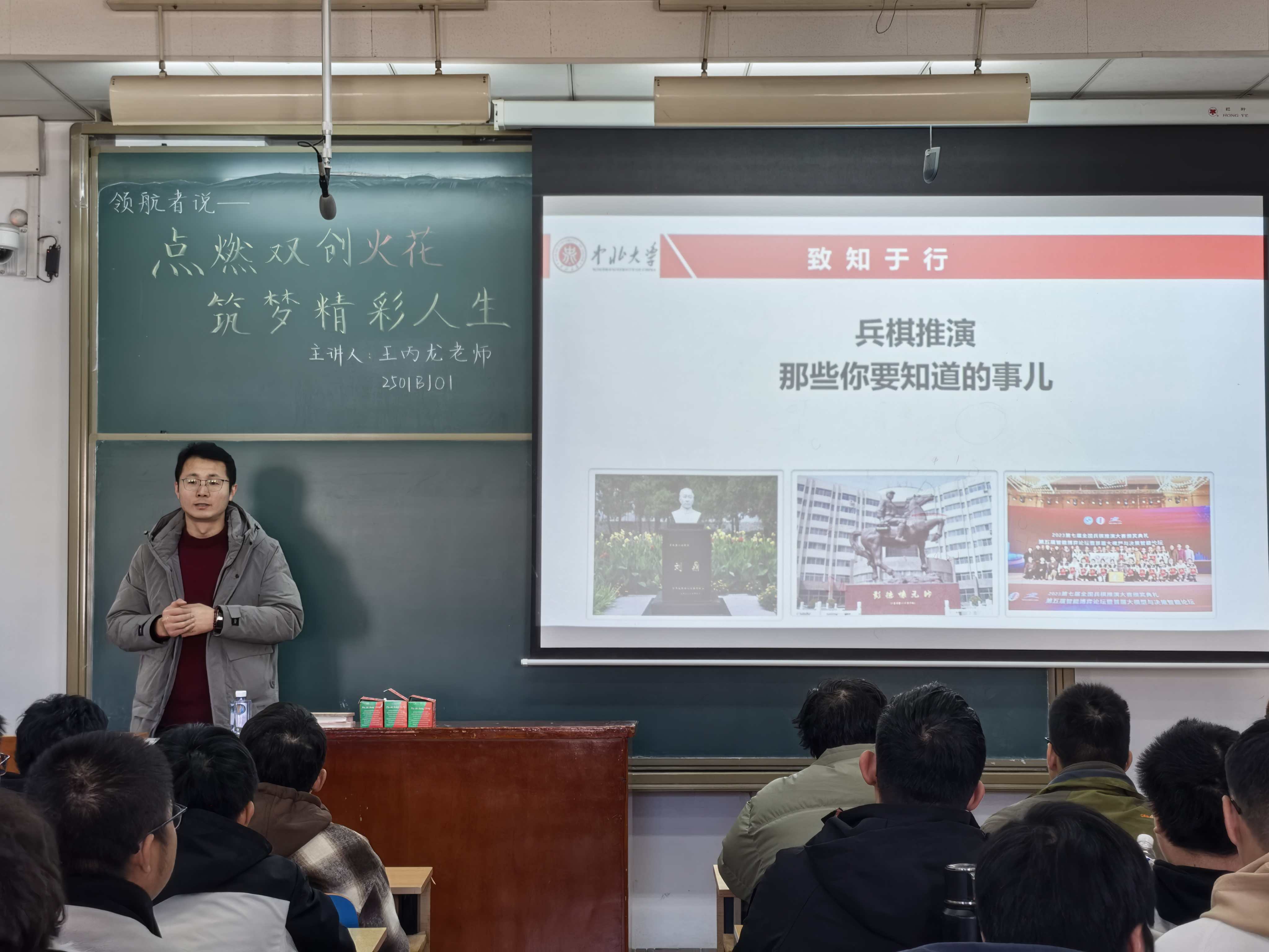 11月13日,智能毁伤工程拔尖创新人才班迎来第三场“领航者说”主题班会。本次班会特邀中国指挥与控制学会科普专委会副主任、山西省兵工学会副秘书长王丙龙老师担任主讲,围绕“点燃双创火花·筑梦精彩人生”这一主题,与同学们共话创新思维与团队成长,为青年学子探索创新创业之路点亮明灯。班会由班主任张树霞老师主持。