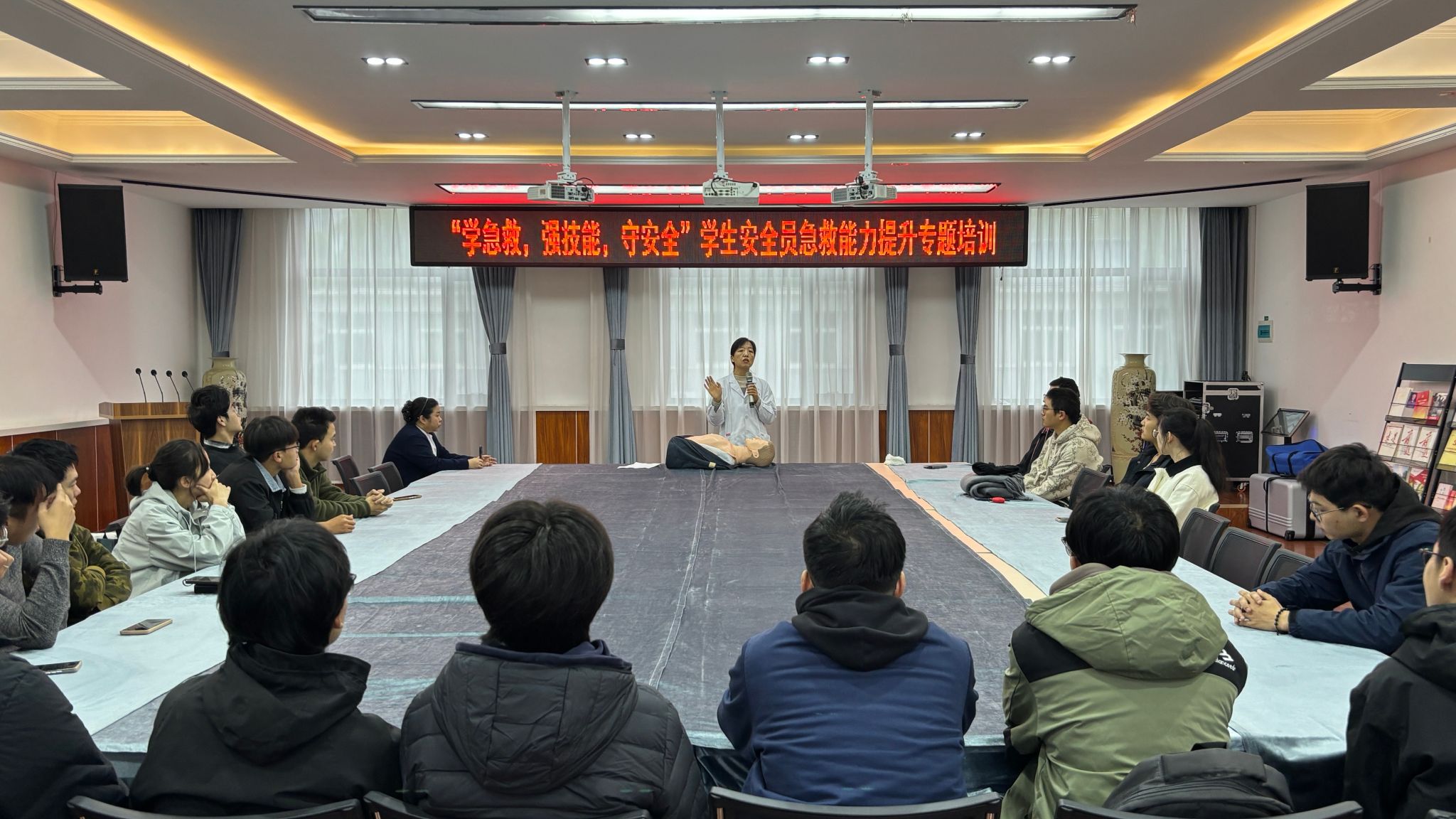 开展“学急救,强技能,守安全”学生安全员急救能力提升专题培训。此次培训前后共六期,共培训134名安全员。期间多名医生现场实操教育与指导,他们结合多年来临床经验与真实案例,详细讲解了心肺复苏的适用场景、操作步骤及关键要点,从判断意识与呼吸、摆放正确体位,到胸外按压的深度和频率、人工呼吸的规范方法,均进行了逐一拆解。