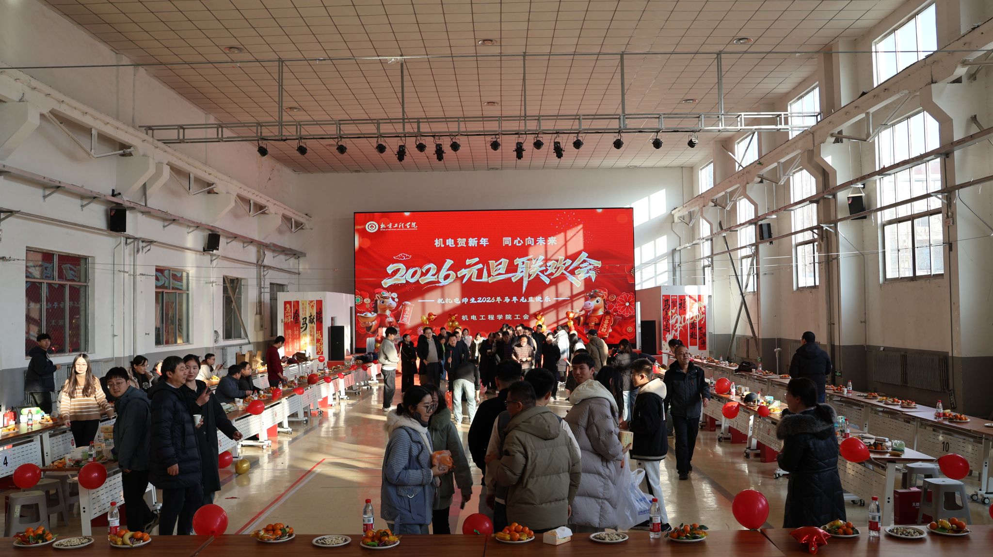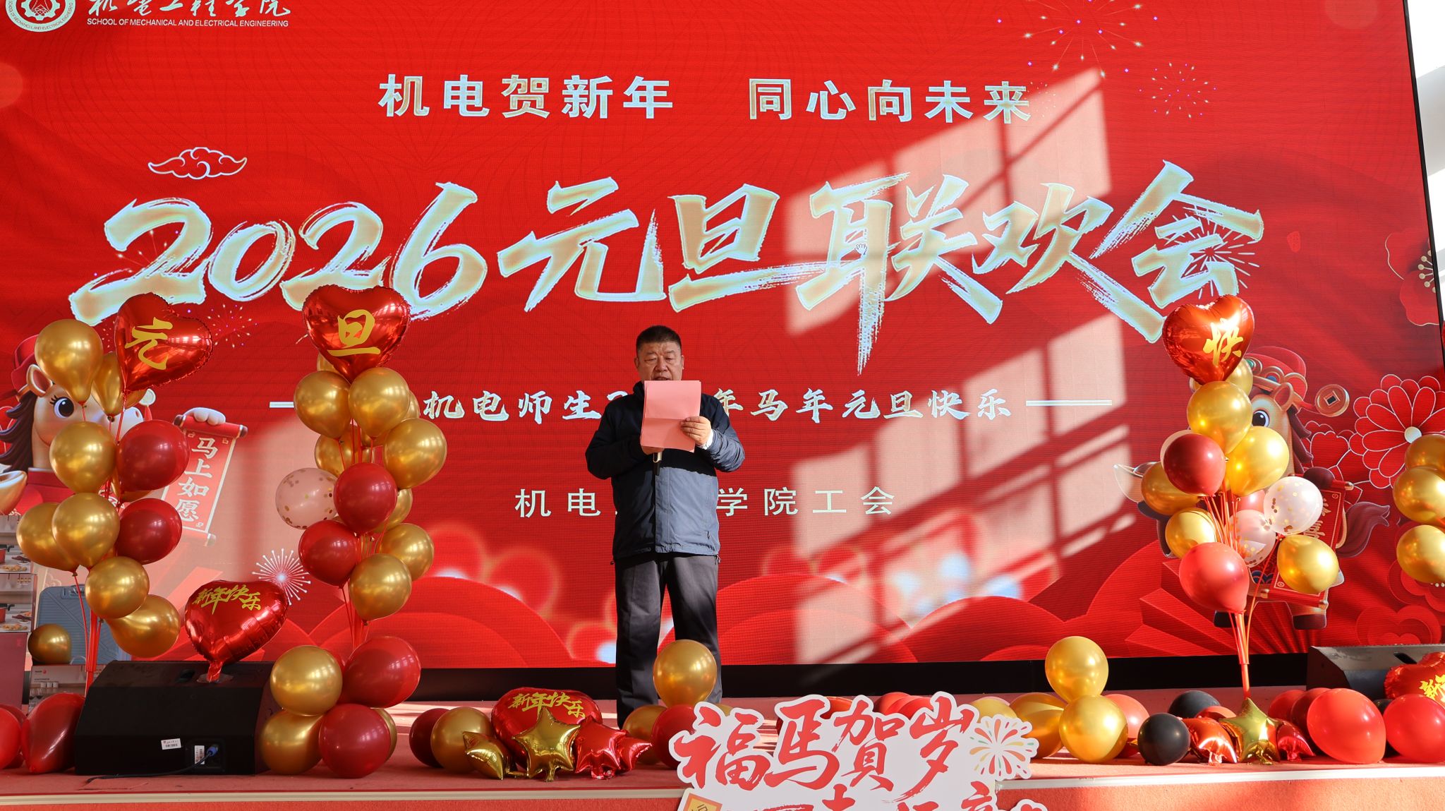 在东区训练馆举办了“‘机电贺新年,同心向未来’2026年教职工元旦联欢会”。大奶做爱领导、教职工到场参加联欢会。大家欢聚一堂,一起挥别旧岁,迎来崭新的2026年。