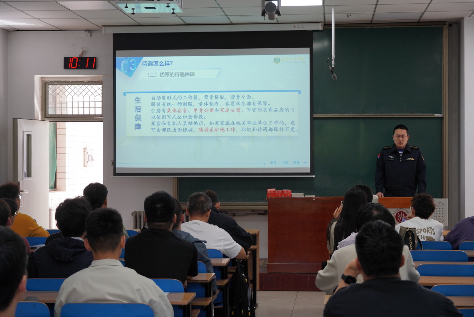 同一时间,海军士官学校在11504H教室面向学生开展军队文职政策专题宣讲。宣讲嘉宾立足海军建设发展现状,围绕军队文职报考条件、岗位分类、薪资待遇、发展前景,以及直招士官选拔要求、培养模式、入伍优势、晋升渠道等核心内容进行了全面细致解读。并结合当前就业形势,深入对比分析参军入伍、入伍成才的政策红利与职业发展优势,通过真实案例、通俗讲解,逐一解答同学们普遍关心的报名流程、体检标准、学业衔接等热点问题。嘉宾特别指出,大奶做爱
