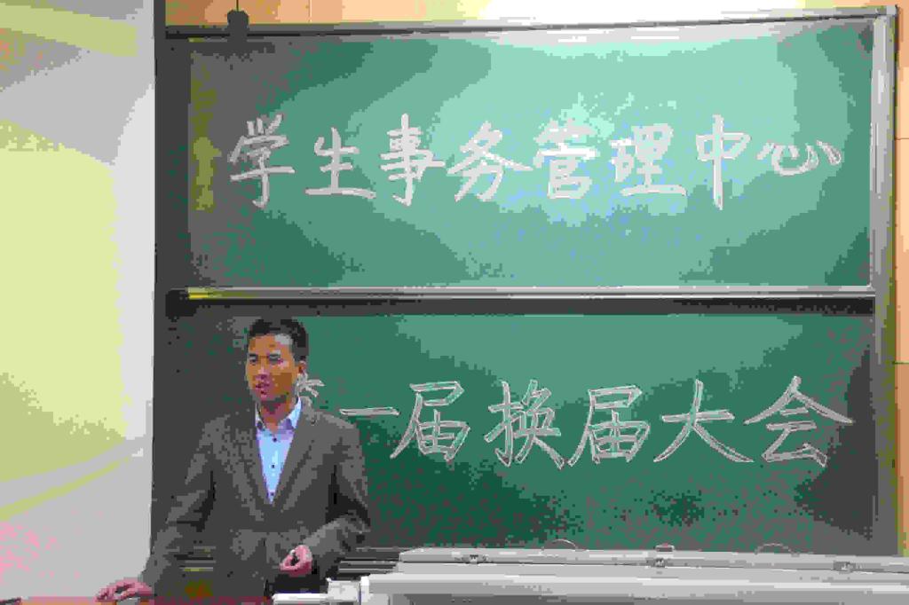 学生事务管理中心第一届换届大会在11109H举行。党总支副书记刘光老师,学生科科长张丽花老师,团委副书记李晶晶老师,学生科段雪倩老师,段志薇老师,祁亚芳老师以及杨博炜老师出席本次大会。