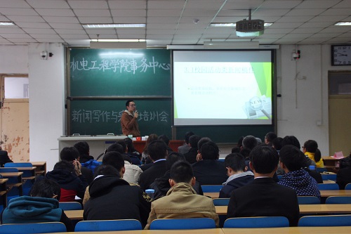 电视台记者组组长王路学姐则通过自己的故事,让我们对采访工作有了进一步的了解。之后,爱中北协会首席摄影师赵振达学长以单反相机的使用技巧为立足点,向大家讲解了如何进行新闻纪实摄影。最后,学生事务管理中心外联工作部部长季瑞林学长对此次大会做了总结。