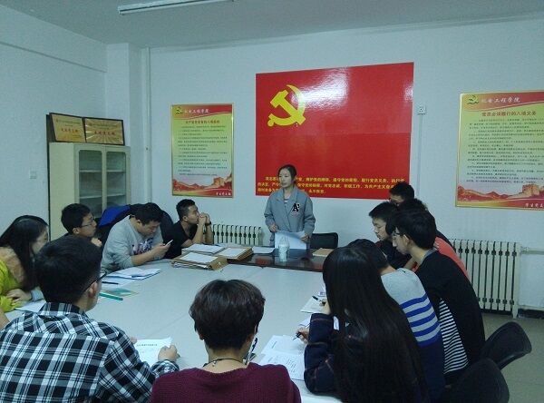 首先谭玉琳同志介绍了支部新的考核标准,她指出:今年的考核标准从基本素质(包括工作能力,文体活动和创新、学科拓展能力),支部考核,材料书写和团支部推优比重四个方面来考核,相比去年更加合理化,正规化,公平化。然后谭玉琳同志宣读了张帆、窦从浩、魏春鹏、田博文、时光、朱豪坤、赵树娜、张志超、周帅文、曲金枝、梁勇起、刘特、刘冕等十三人的量化考核的加分情况。接下来谭玉林同志给大家讲解了材料的书写问题,包括入党申请书,自传,思想汇报,积极分子考察登记表,函调证明等。她说材料书写是一项非常重要的内容,大家在书写的时候一定要认真对待,有不懂得地方要及时询问培养联系人,入党介绍人或者支部委员,对于材料一定要保质保量完成。最后她勉励大家在以后的学习,生活和工作中要切实发挥党员的模范带头作用,为党支部的建设和组织发展做出贡献。