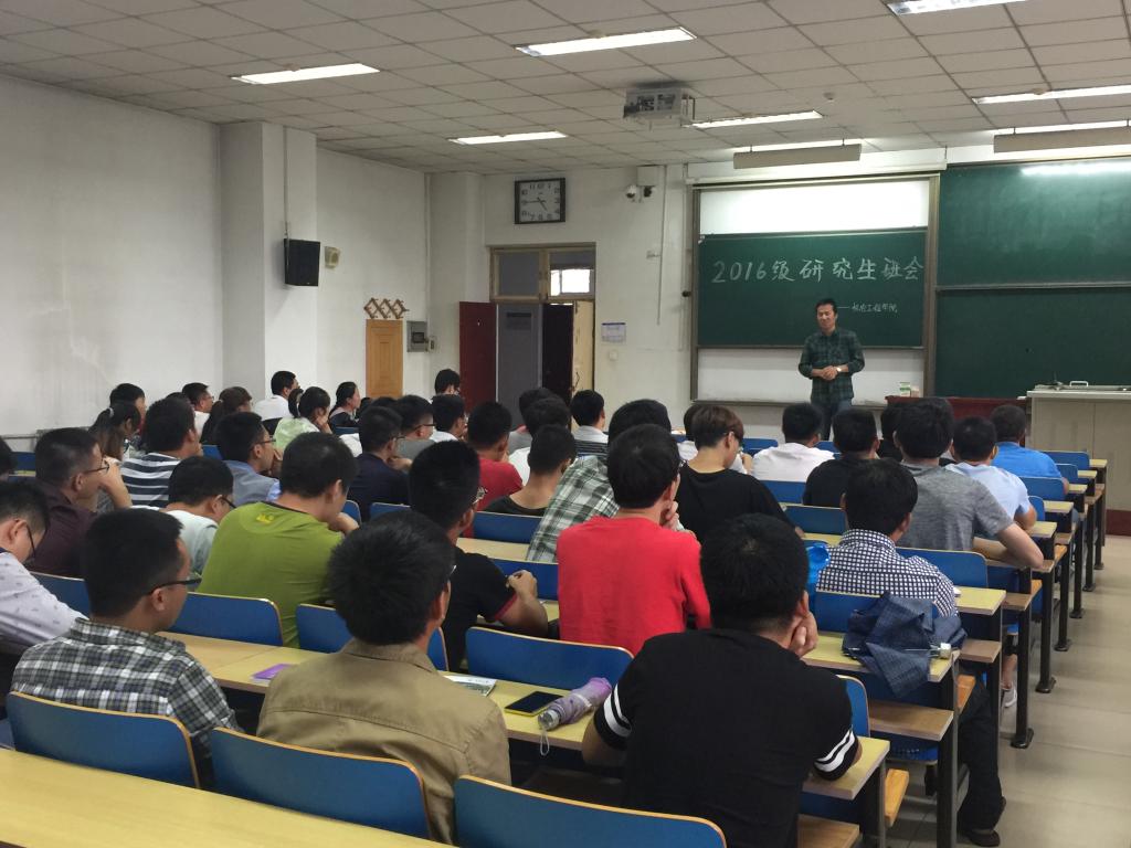 刘老师对2016级研究生新生表示了热烈欢迎,结合多年的学生工作经验以及真实案例,从生活、学习、科研、人际交往等几个方面展开阐述。刘老师指出,安全是重中之重,所有学生一定要提高安全意识,加强自我防范;在生活中与同学们和睦相处,在学习和科研上发奋图强,并能积极参与各种校园活动,让自己的研究生生活过的充实而精彩。武瑞芳老师着重强调了《研究生学生手册》中的学位条例管理体制、评优奖励办法及处分条例等方面,希望大家认真研读该手册。最后徐永杰老师用风趣幽默的语言为点出保密的严肃性与严重性:“涉密不上网,上网不涉密”。