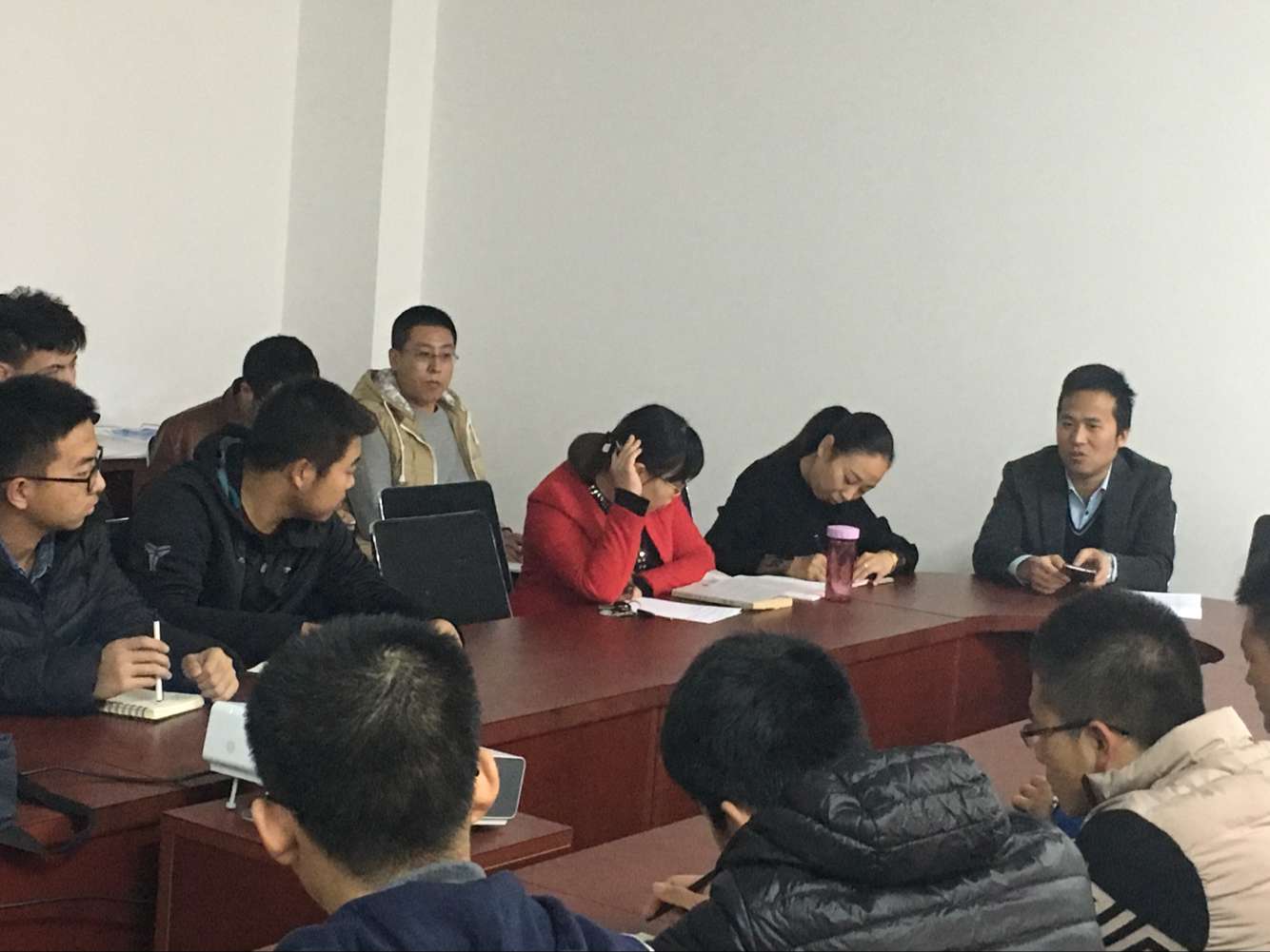 学风建设、安全卫生工作,重点谈了大一、大二的宿舍卫生问题,要求大家加强宿舍文化建设。随后,各班班长谈了班级卫生和出勤情况,探讨了改进方法。张老师也就此问题和同学们积极探讨,提出了自己的建议。最后,各班长对班级管理经验进行了交流:16级各班班长描述了自己在工作时出现的问题和不足;15级各班班长结合以往工作经验,为他们提出了整改方法,希望他们做好班级的管理工作,增强班级凝聚力。