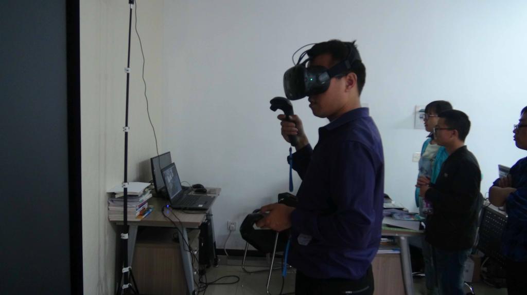 吉星先生通过视频展示了虚拟现实技术在制造业中的应用,并细致地讲解了虚拟现实技术的概念、软硬件及其在工业中的应用和发展趋势。其后,吉星先生回答了在场老师和研究生的提问。讲座结束后,吉星先生带领老师和研究生们通过HTC Vive设备体验了他们公司开发的相关产品应用。