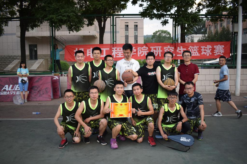 在东区塑胶篮球场举行了第一届研究生篮球比赛。最终经过两天的激烈比赛,研三获得本届研究生篮球赛冠军、研一获得亚军、研二(1、2班)混合队获得季军、研二三班获得最佳道德风尚奖。比赛结束后科研科王丙龙老师为各代表队颁发了获奖证书和奖品,并与在场的运动员和赛事组织人员合影留念。