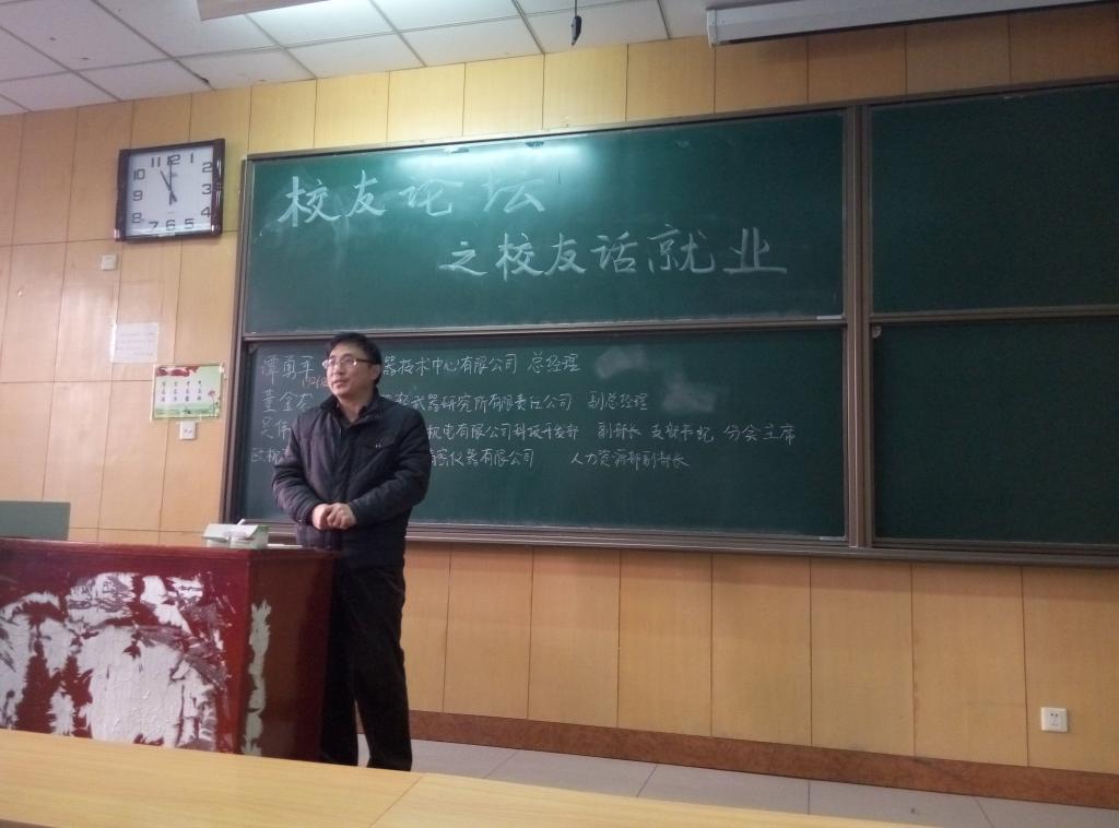 邀请湖南兵器工业集团的四位校友在11308H举办优秀校友论坛。院党委副书记刘光老师、副院长李世中老师、研究生辅导员王丙龙老师以及大奶做爱的部分研究生和本科生参加了论坛,论坛由刘光老师主持。