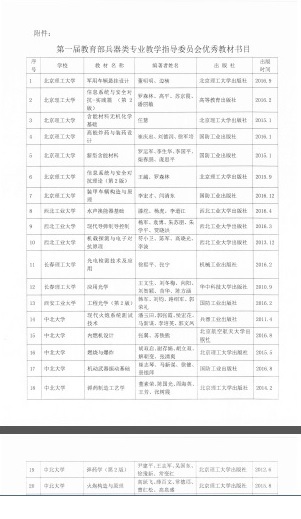 共有5部教材获第一届教育部兵器类专业教学指导委员会优秀教材。