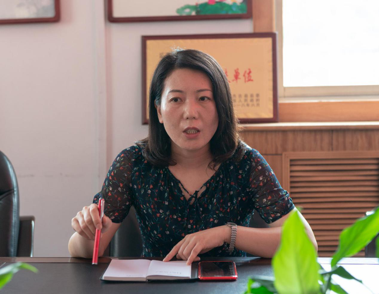 首先,李晶晶老师介绍了我们此行的人员以及目的。吉县人民政府宣传部热烈欢迎我们的到来并对我们的实践寄予厚望,之后他们详细介绍了吉县的概况,产业文化,以及脱贫措施。王彦章常务副部长提到:”吉县位于山西省西南部,吕梁山南端,隔黄河与陕西相望,总人口11万,辖8个乡镇,79个行政村,是国家扶贫开发工作重点县。但是这里资源丰富,有享誉中外的壶口瀑布,也有景色秀丽的人祖山,还有香脆甜爽、品质上乘的“吉县苹果”。吉县也因此被誉为“中国苹果之乡”。摘掉穷帽子,关键要找对致富路子。山区农业小县如何实现脱贫?吉县县委、县政府在实践中探索出了拔除穷根子的好方法——产业扶贫。在这样的思路指引下,当地着力打造红色苹果、绿色生态、黄色瀑布“三色”品牌产业扶贫的新路径,并由此形成“3+X”产业扶贫新格局。多年来,吉县以“黄色瀑布”品牌为特色,依托壶口瀑布、人祖山两大景区,大力发展全域旅游,先后举办了“壶口文化旅游节”“春华秋实”苹果文化旅游和“厚川味道”等系列活动,引导群众发展“苹果采摘”“农家乐”,带动千余人实现人均增收3000元以上。 “绿水青山就是金山银山”,其实,吉县产业脱贫不只是苹果产业和旅游产业。该县以“绿色生态”为致富的资源,帮扶贫困群众吃上“生态饭”。同时,吉县以其他特色产业为补充,因地制宜,在东部川地种植蔬菜、小杂粮、中药材,在西部沿黄乡镇种植花椒、烤烟、核桃,全县共发展特色种植6.5万亩,带动脱贫6580余人。