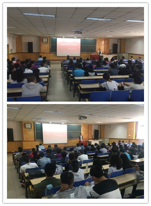 在09102教室召开2018级研究生入学教育,党委副书记刘光老师和科研科全体老师参加。