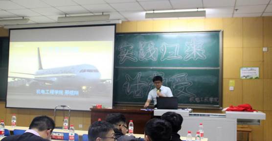 之后,五位主讲人分别从不同方面与大家分享了自己的暑期实践经历。首先是星梦暑期实践队。主讲人为我们展示了实践队在右玉的见闻,阐释了“执政为民,尊重科学,百折不挠,艰苦奋斗”的右玉精神。星梦暑期实践队为右玉贡献了自己的力量,将右玉精神发扬光大,共建右玉生态文明,让更多的人看到习近平总书记“绿水青山就是金山银山”理论的实际成果。接下来是飞行器制造与工程专业邢煜翔同学。他为我们分享了他在首航,海航一线的所见所感。在暑期实践中,学长在这些地方了解了很多在书本上没有的知识,加深了自己对专业的理解,提高了自己的办事能力。