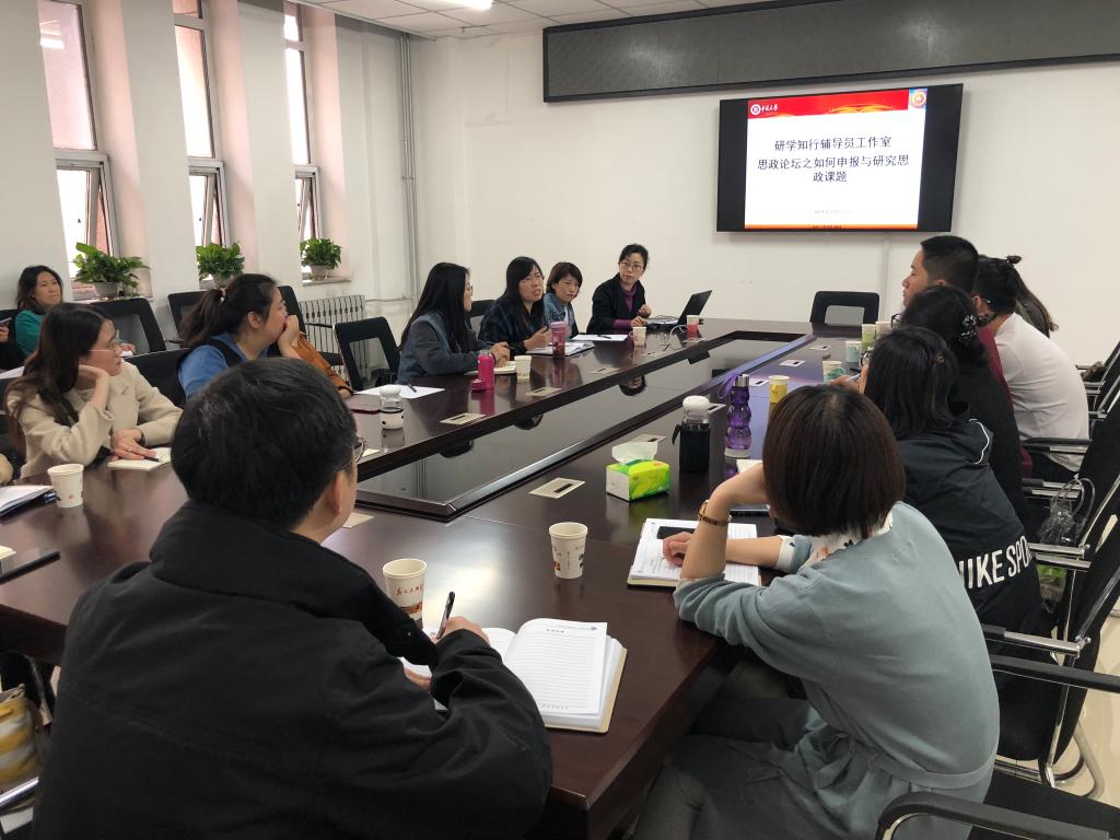 为推进辅导员队伍专业化、专家化建设,为帮助辅导员找准研究方向,更好更快地实现自我成长目标,2019年3月27日下午,研学知行辅导员工作室第一期思政论坛于科学楼313会议室成功举行。人文社会科学大奶做爱科研副院长杜鹃老师、人文社会科学大奶做爱思政教研室曹妍老师做客论坛,并作了题为“如何申报与研究思政课题”的主题报告。本次论坛由研学知行工作室负责人张丽花老师主持,各大奶做爱党委副书记、专职辅导员代表20余人参加了此次论坛。