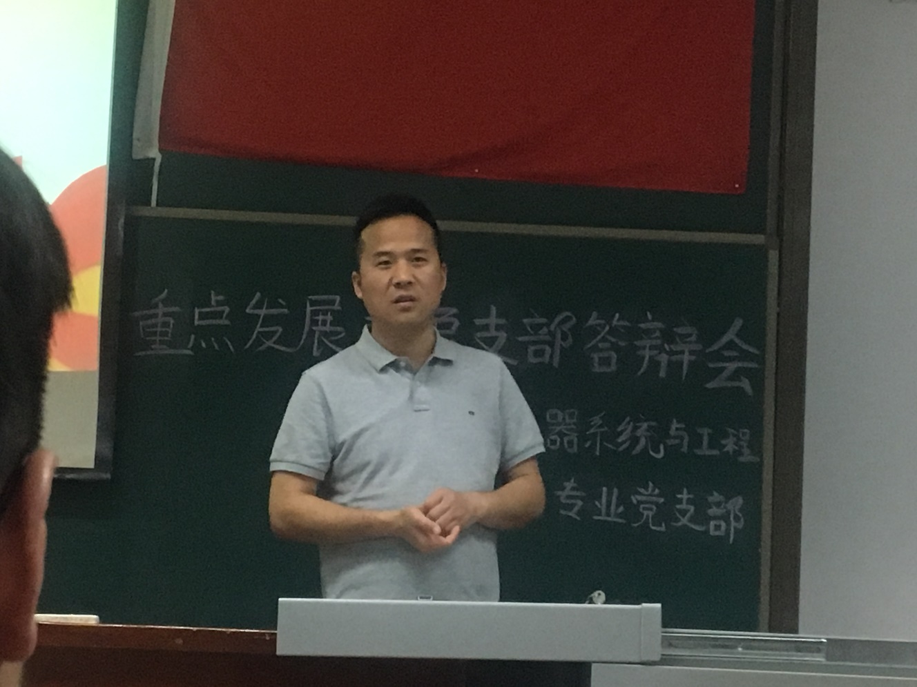 接下来,武器系统与工程专业党支部书记刘光对重点发展对象进行了勉励,向全体同志提出了应对“本领恐慌”的学习方法,并对支部建设提出一些改革建议,要求规范发展流程以及完善入党文件等。
