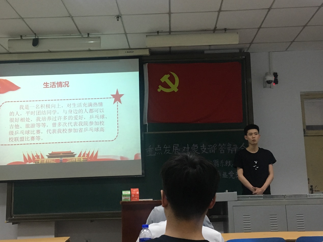 2019年5月25日晚上7点30分,武器系统与工程专业党支部在11106H教室召开了重点发展对象支部答辩会。参加此次会议的有武器系统与工程专业党支部全体党员、预备党员以及全体重点发展对象。会议内容主要由支部答辩、量化考核与党史考核三部分组成。