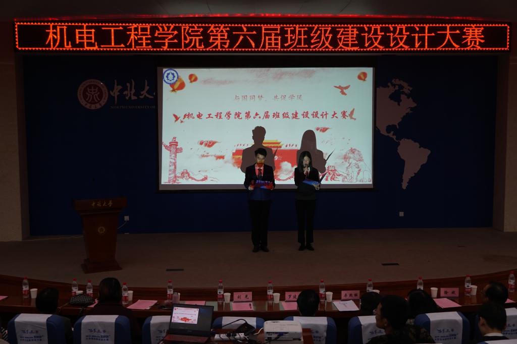 的青春风采。此外,各班班长向在场师生介绍了班级建设的出发点和着力点,提出了学风建设、思想道德建设、文体素质建设、班风班貌建设等多种建设方案,并着重强调了如参加社会服务、筹建班级银行、设置班级兴趣小组、组织集体自习等班级特色方案。其中19010411班将美食制作与班级建设巧妙结合,19010502利用班级同学与中北的爱情故事展示班级团结的风貌、19010405借助虚拟班级人物“小五”动态讲述奋斗历程,19010401班的答辩则极尽铿锵有力,19010s01班则把机器人搬上舞台科技感十足,各班班长以虚实结合、感情与制度两条主线叙述班级建设的故事,船长、机长、国潮、科技、创新这些独特的词汇获得在场所有同学的一次次掌声。各班在答辩中还间穿插了集体口号、才艺表演、情景话剧、宣誓、三维动画、蒙太奇混剪等多种独特、新颖的手法,向全院师生展示了三个月来的班级建设成果,并对未来做出了展望。嘹亮的口号和歌声,震撼的动画和特效,激情澎湃、张弛有度的演讲,给现场观众带来了一场场的视听盛宴,推动现场氛围走向高潮。答辩中场全场同学合唱《夜空中最亮的星》,点点闪光灯如同那夜空中闪闪星光,“新青年唯奋斗不负韶华”的振振誓词更是将答辩推向了高潮。