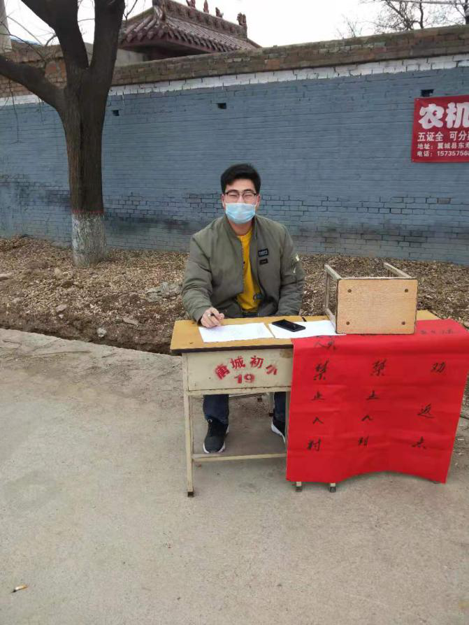 装甲车辆工程专业的赵琪同志,作为一名预备党员及学生干部,她积极地工作在抗疫一线上,在村口登记外来人员,检测体温,监督村民戴口罩,杜绝病毒传播,保障生命安全,勇于承担一名党员的责任,为构筑疫情防控的人民防线切实贡献青春力量。
