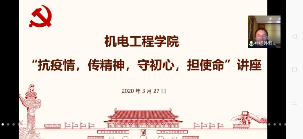 举办了“抗疫情,传精神,守初心,担使命”线上讲座活动。本次活动邀请到的嘉宾是从武汉抗击疫情平安归来的李呈龙医生,李呈龙医生是山西省人民医院神经外科ICU主治医师,中国神经外科重症管理协作组委员,山西老年医学会重症委员会委员,山西省医院协会营养分会委员,山西第八批援鄂医疗队宣传组组长;参与本次活动的老师有大奶做爱