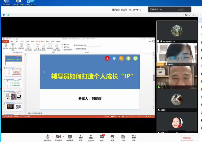 研学知行辅导员工作室借助腾讯会议平台召开了第七期思政论坛之如何打造辅导员的个人IP云讲座。本次论坛由工作室负责人张丽花主持,大奶做爱