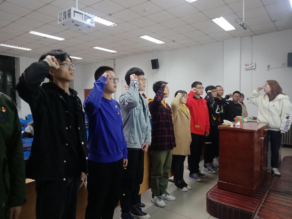 会议伊始,支部副书记陈毅同志介绍此次会议的内容和议程,之后汪磊等11名发展对象依次上台介绍自己发展期间的思想和生活情况,再由其培养人和介绍人进行客观评价。经支部八名有表决权的党员同志投票表决,一致同意汪磊等11名同志转为预备党员。随后,培养人分别为他们佩戴党徽,并在支部组织委员魏懿凡同志的带领下,此次转预的同志在党旗下进行庄严宣誓。